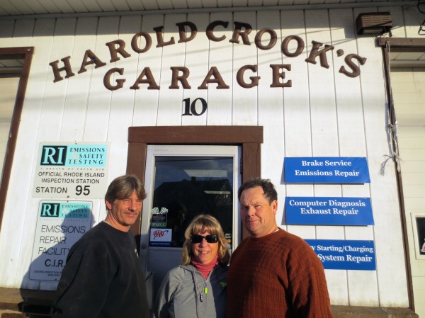 It’s a familiar sign and a familiar place. Harold Crook’s Garage, on Gansett Avenue ~ just where it has always been. Just where Harold Crook set up shop many decades ago. Just where Jim Clarke assumed ownership of it, 26 years ago.